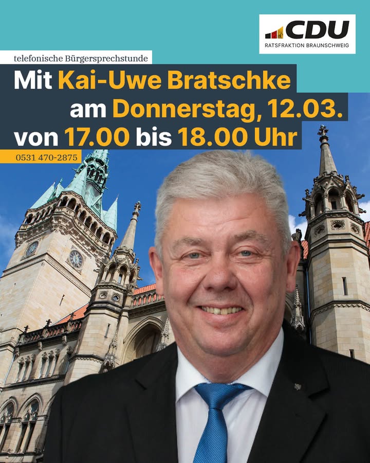 Fragen können zur Sprechstunde oder im Vorfeld per E-Mail an cdu.fraktion@braunschweig.de bzw. bei Facebook unter www.facebook.com/CDUFraktionBS gestellt werden.