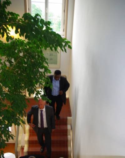 Die Fraktionssitzung begann mit einer Führung durch das Gebäude. Dabei erläuterte Geschäftsführer Adama Logosu-Teko den Fraktionsmitgliedern der CDU die geplanten Umbaumaßnahmen.