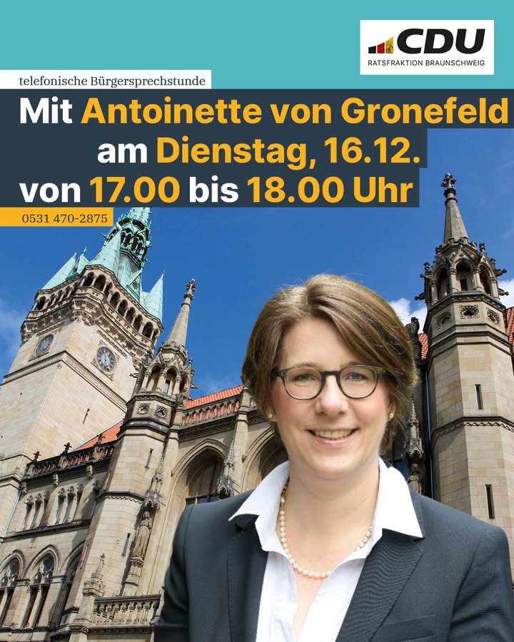 Fragen können zur Sprechstunde oder im Vorfeld per E-Mail an cdu.fraktion@braunschweig.de bzw. bei Facebook unter www.facebook.com/CDUFraktionBS gestellt werden.